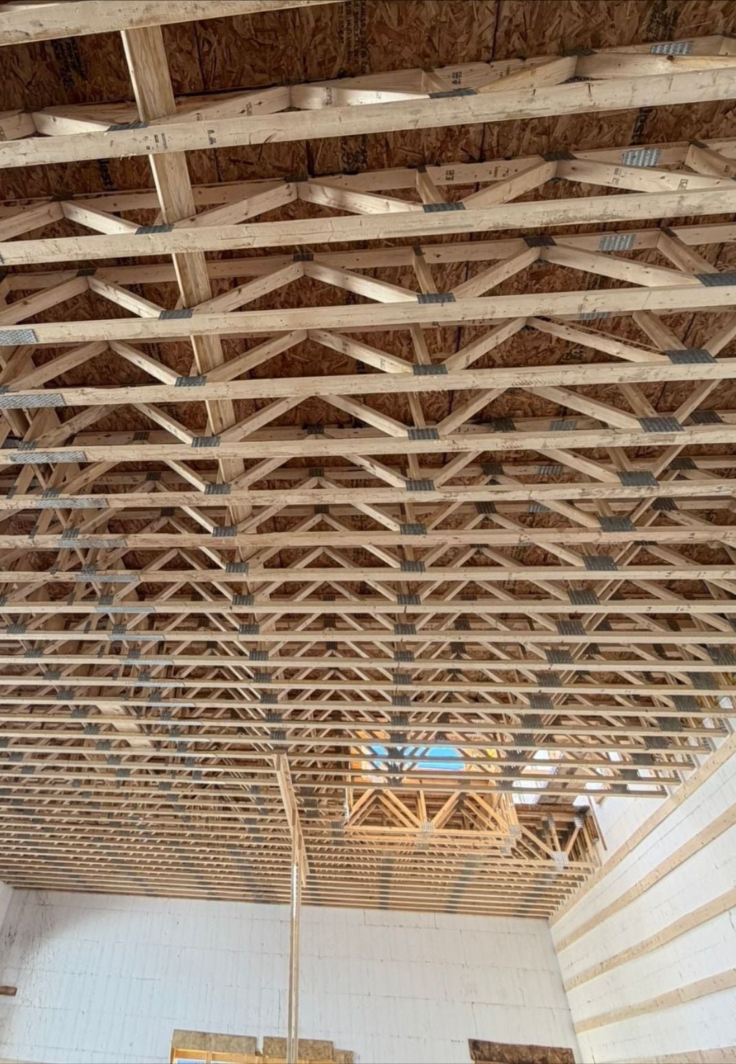 Our engineered floor joists are manufactured using high-quality lumber and precision metal connector plates, ensuring consistent strength and reliability throughout the entire system. Unlike floors built using traditional framing methods, our engineered floor joists are resistant to warping, twisting, and shrinking over time. The result is a floor that remains level, stable, and quiet—eliminating common issues like squeaks and uneven surfaces.